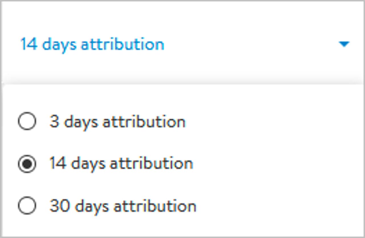 By default, the attribution window is set to 14 days post-click. Your campaign’s performance is based on this default.