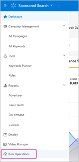 Bulk operations assists in creating, updating and enabling or disabling campaigns, ad groups, items and keywords. This includes setting and updating budgets and bids, changing match types, setting and changing flight dates and adding ad groups using an Excel spreadsheet.