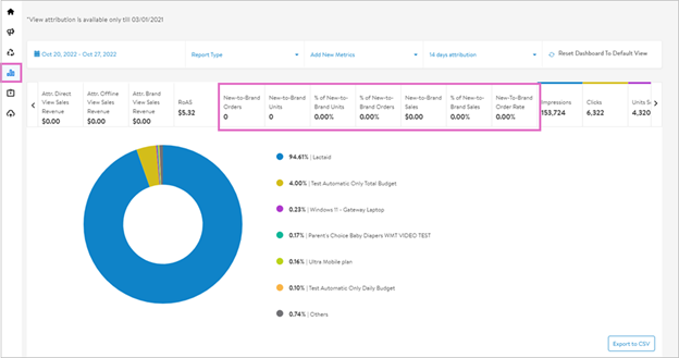 If you want to focus your campaign around brand conversion and reach, use the Keyword Performance report to identify keywords with a high percentage of new-to-brand orders.